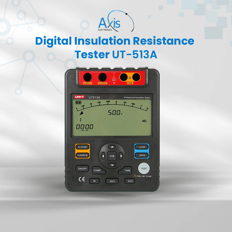 UT-513A Digital Insulation Resistance Testers can measure insulation resistance of large transformers, generators, high-voltage motors and more. It can also measure PI, DAR and other important specifications. Measured data can then be analyzed through PC software. It can produce test voltage up to 5 kV.
