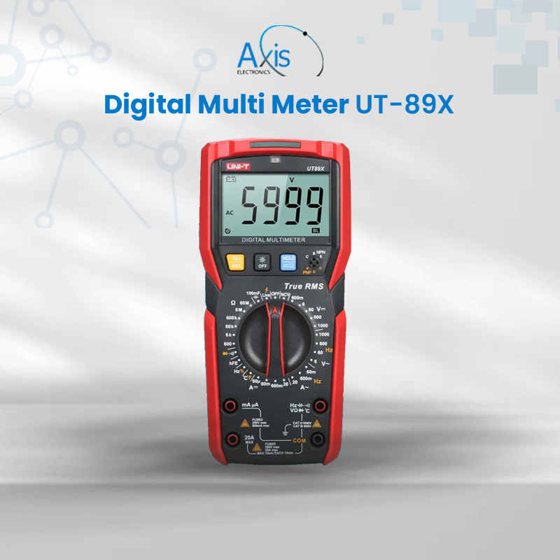 UT-89X is a reliable hand-held 3 5/6 bit digital multi meter with true RMS sine wave measurement. It can measure Max. 1000 V DC/AC voltage, Max. 20 A DC/AC current, resistance, capacitance, frequency, diode, hFE, continuity and NCV, quickly distinguishing between neutral and live wires accurately. UT-89X can measure temperature and detect neutral and live wires with a test lead.