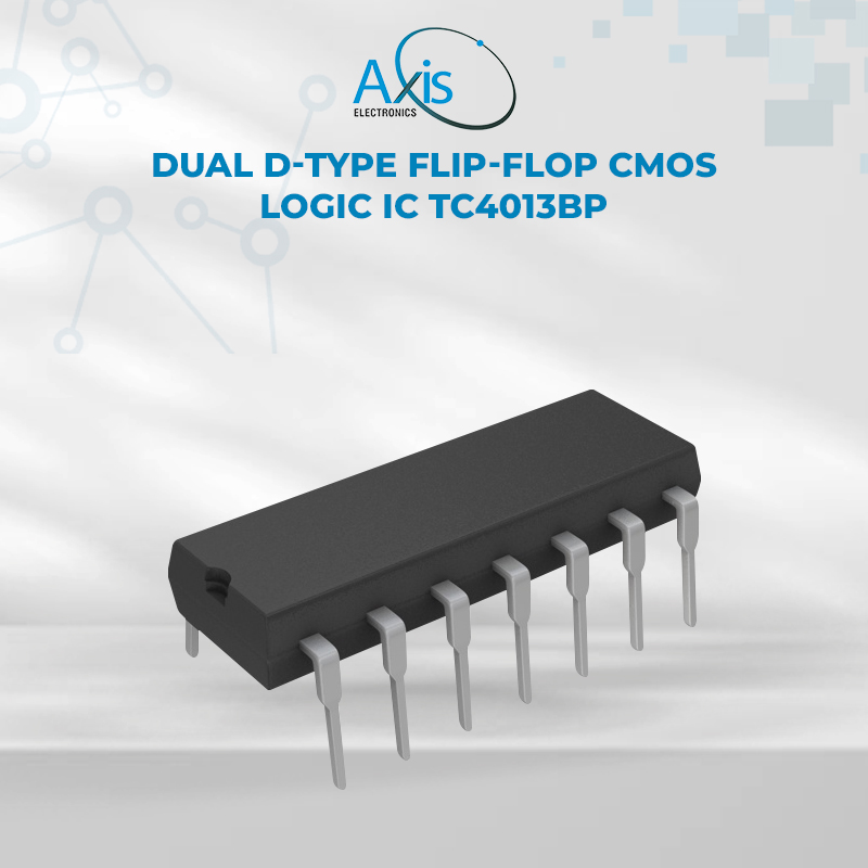The TC4013BP is a dual D-type flip-flop integrated circuit from the CMOS 4000 series logic family. It contains two independent D-type flip-flops with complementary outputs and set/reset inputs. Each flip-flop transfers the logic level from the DATA (D) input to the Q output on the positive-going edge of the clock signal, making this device suitable for digital data storage, sequential logic, and timing applications.
