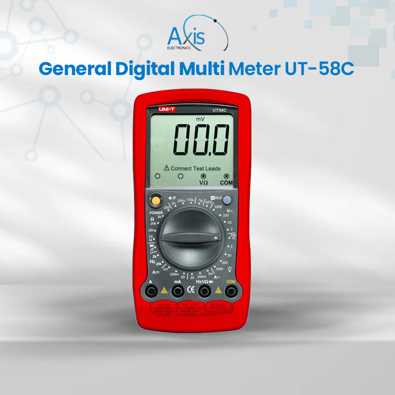 UT-58C is a safe and reliable manual range digital multi meter that is easy to operate. Its large 60mm x 54mm LCD screen conveniently displays measurement results. This digital multi meter satisfies a variety of applications in both electronics and electrical fields.