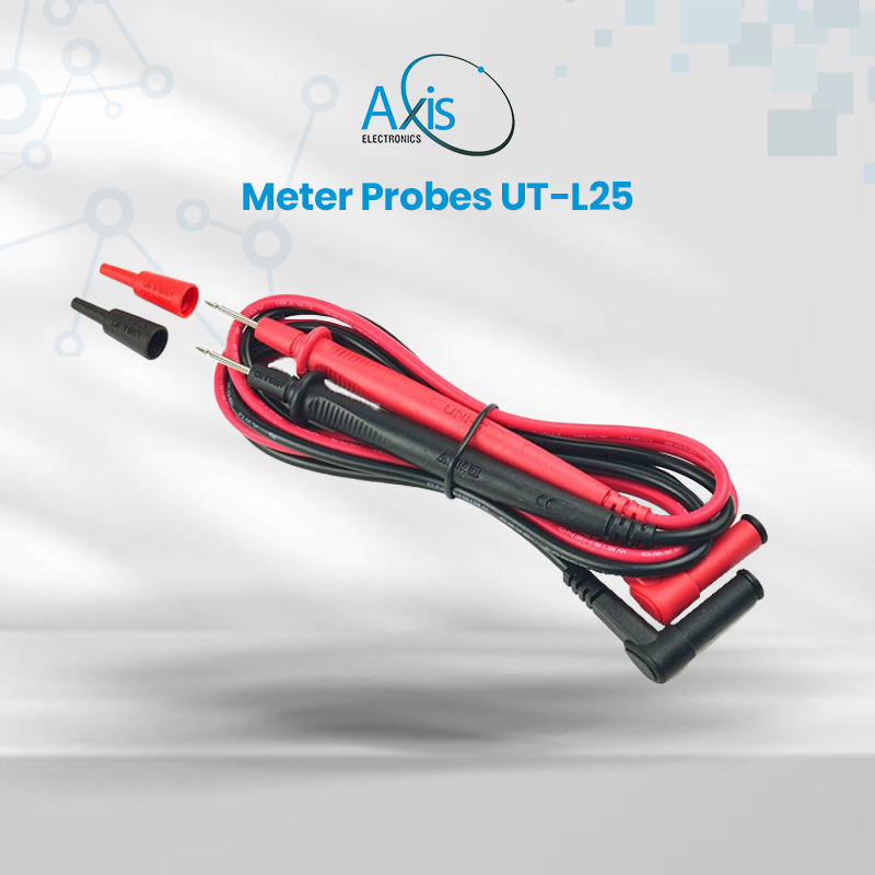 UT-L25 Meter Leads are multi-purpose testing leads, double insulation with standard diameter’s banana plug. These UT-L25 probes are high-quality for digital multi meters. These multi meter cables are rated for 20 A and 1000 V, and their length is 9 cm.