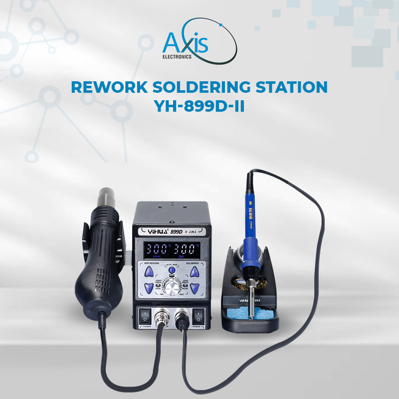 YH-899D-II rework station for Desoldering SMD components such as SOICs, ICs, QFPs, PLCCs and BGAs, but can also be used for any production application requiring controlled hot air such as heat shrinking, lacquer removal and preheating.the highest-end precision PID program is implanted, fast temperature compensation, small error. With internal SMT double-panel process, the process is neat, and the machine stability and safety are higher. The soldering iron will automatically detect its working state.When it is in the static state and reach the sleep time, the soldering iron temperature will automatically drop to 200 °C. It can effectively prevent the iron tip from oxidizing and prolong the service life, saving energy and environmental protection.This iron working time can be set from 0 ~ 99 minutes.