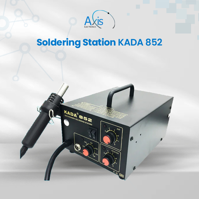 KADA 852 Hot Air And Soldering Station SMD Rework Station KADA 852/952 Hot Air And Soldering Station SMD Rework Station Specification: Power Voltage: 110 V AC or 220 V AC Power Consumption: 270 W (Max.) Pump: Diaphragm Pump Capacity: 24 L/min (Max). A soldering station is an electronic tool for hand soldering of electronic components onto a PCB. Most soldering stations have temperature control and are mostly used in electronics PCB assembly and manufacturing units.